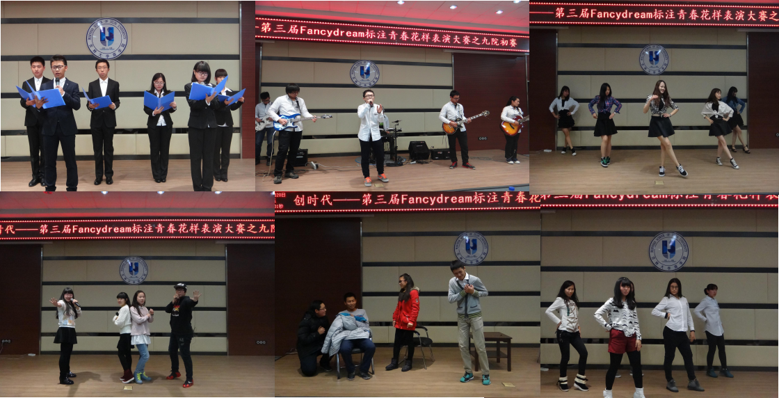 比赛开始,由生命科学学院带来乐队曲《apologize》,主唱的低沉嗓音以及乐队成员的默契配合,让我们心随其动,沉浸其中。在欣赏过深情的演唱之后,是法学院女生的舞蹈《dance dance》,她们舞步轻盈,热辣性感,high翻全场,现场的紧张气氛被一扫而空。紧随其后的是行政学院的小品《生日快乐》,演员们精湛的演技和精心编写的台词,赢得阵阵喝彩,让气氛再一次升温。欢笑过后,迎来了外国语学院的舞蹈《dancing queen》,女生们高挑靓丽,美艳动人,令人忍不住屏住呼吸欣赏这群多才多艺的精灵。轻松之余,计算机学院带来的诗朗诵《青春·.未来·理想》又让我们想起肩负的艰巨使命。欣赏过国学经典之后,外国语学院的小合唱《what make you beautiful》又为现场刮来一股潮范十足的欧美风,在轻快的节奏中,我们感受到春风般的清新和温暖。之后是行政学院的现代舞《good boy》音乐硬朗帅气,舞蹈更是霸气十足,活力四射。