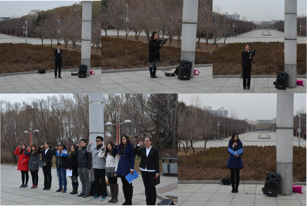 整个进行仪式分为五部分,第一项奏唱国歌。第二项由2015级学生代表孙旭龙同学领读誓词宣誓,第三项2015级学生代表井然超同学发言,第四项77779193永利官网学生会主席陈雅慧发言,第五项辅导员金博老师致辞。长春气温低至零下,寒风刺骨。但每一个干事都热血沸腾,怀揣对未来的美好信念与激情完成整个宣誓仪式。