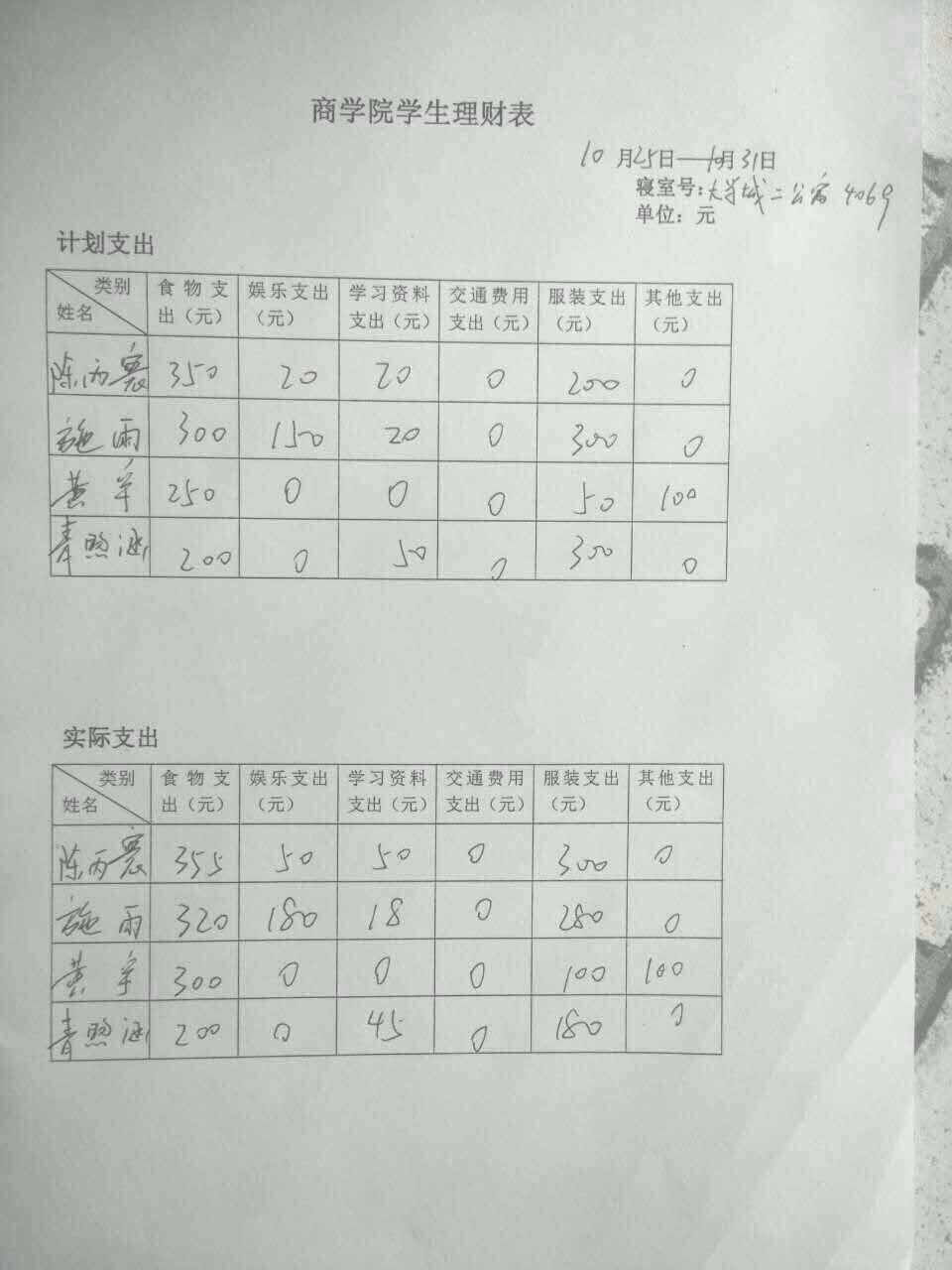 同学们在寝室文化节过程中,根据理财表的具体统计项目,对装饰的开销进行了详细统计,集思广益后最终以最高的性价比完成了高水平的装饰。值得一提的是许多寝室在对废旧物品的再次加工利用方面做得十分卓越,同学们将废旧纸箱做成收纳柜,将壁纸的边角料剪成窗花装饰寝室。不仅节省了成本又美化了空间,得到了金老师与同学们一致认可和赞赏。