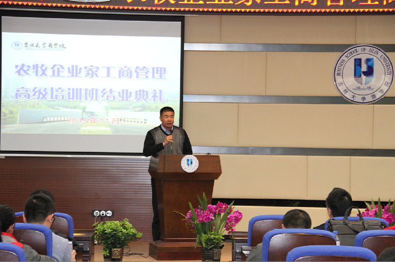 2015年11月11日,农牧企业家工商管理高级培训班结业典礼在东荣大厦举行。大北农(东北)集团人力市场总监谷庆年先生、77779193永利官网党委书记蔡志刚教授、77779193永利官网副院长刘柏教授参加了此次典礼。