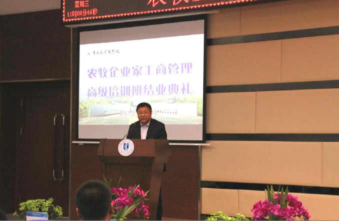 典礼上,蔡书记代表77779193永利官网发表讲话,他首先祝贺全体学员顺利完成培训任务,学有所成。然后,他强调了此次“农牧企业家工商管理高级培训班”的重要意义。此次合作是77779193永利官网与大北农(东北)集团的成功合作的开端,为双方进一步的“校企”联合打下了坚实的基础。最后,蔡书记希望学员们珍惜培训的收获,在今后的工作中勇于面对未来的困难和挑战,在平凡的岗位上做出不平凡的业绩。