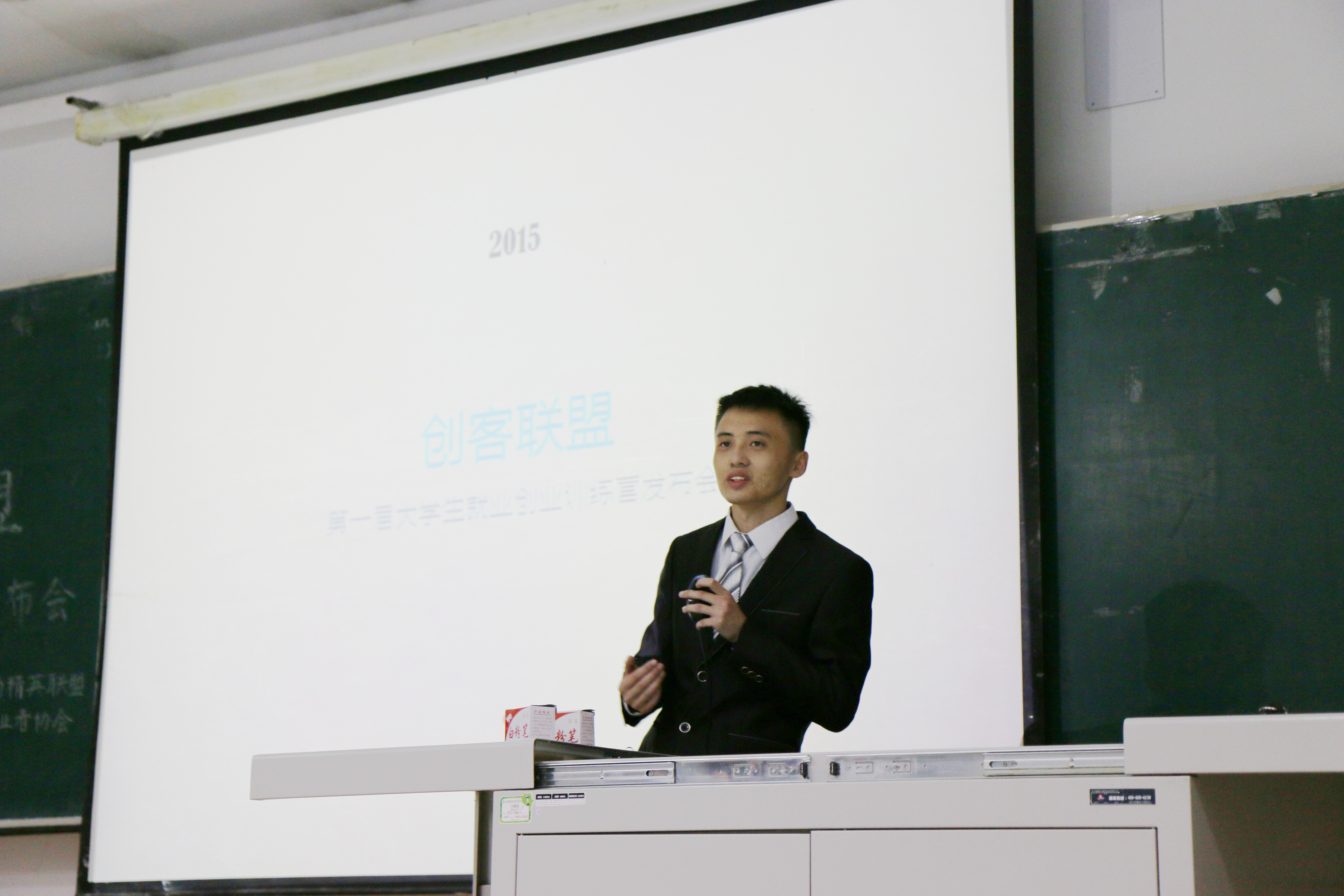 在长达6分钟的精彩短片的引导下,现场气氛渐入佳境。随后由创客联盟创始人发表讲话,王学长向我们简短地阐述了创协诞生的目的以及今后的发展目标,并对“创客联盟”训练营进行了详细的介绍,以及学习锻炼所能获得的资源与机会。