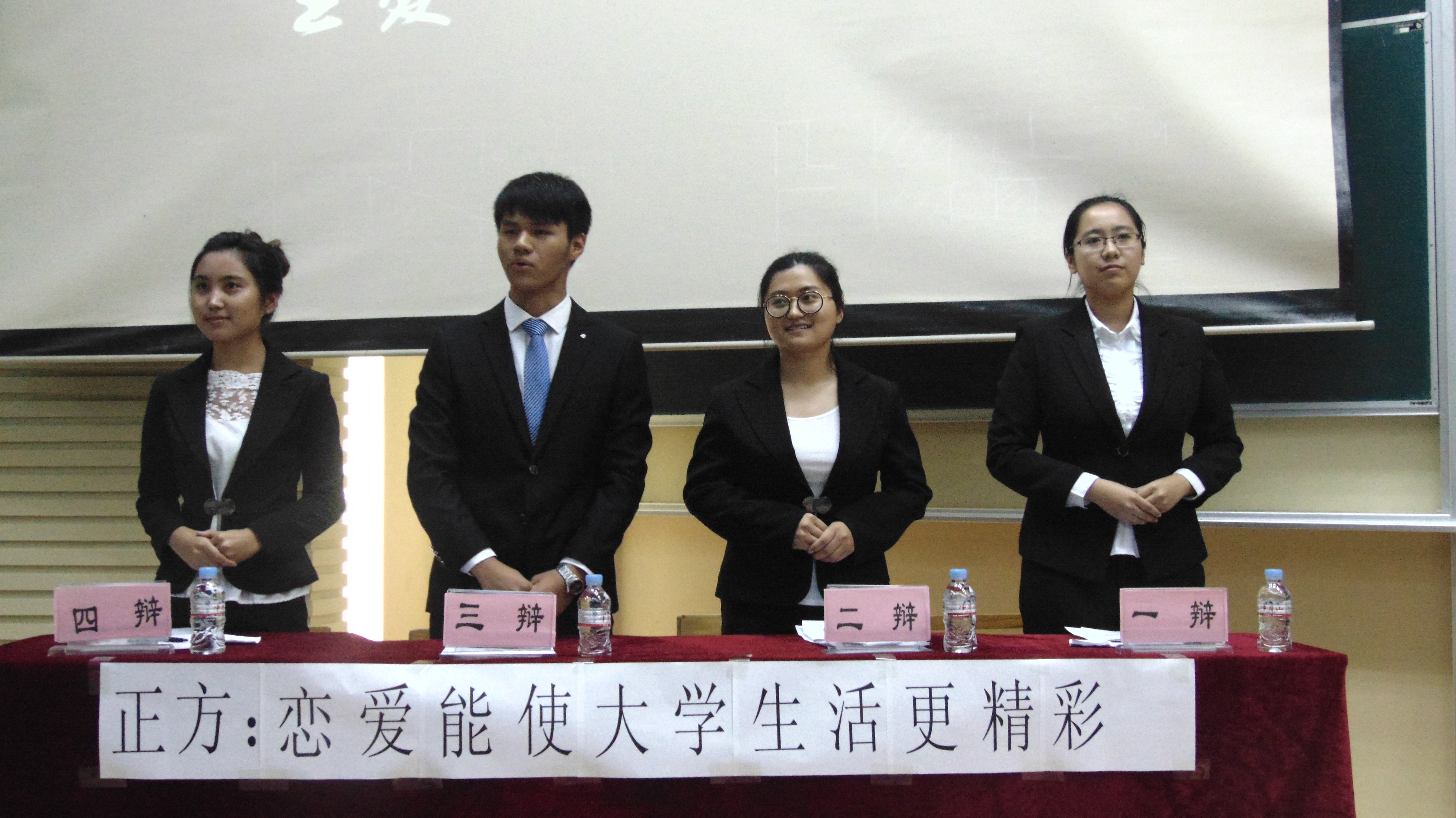 接着由14级辩论队成员为大家带来了大家期待已久的迎新辩论赛。正方观点:恋爱能使大学生活更精彩,反方观点:恋爱不能使大学生活更精彩,辩题非常贴近大家的日常生活,也引得同学们聚神聆听。辩手们的才思敏捷以及灵活应对,连连赢得观众们的喝彩,辩手们所展现的风采将观众们彻底折服。