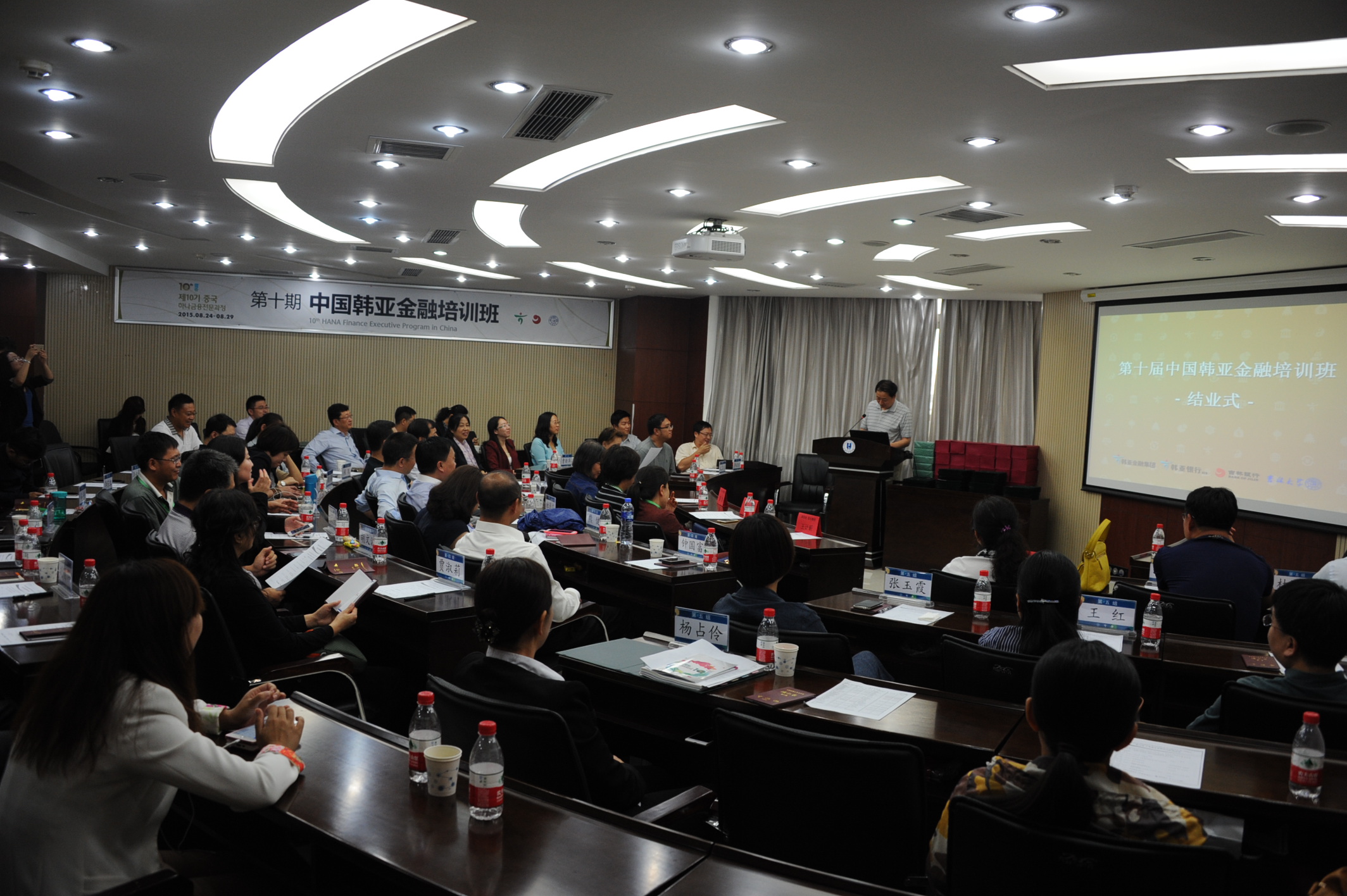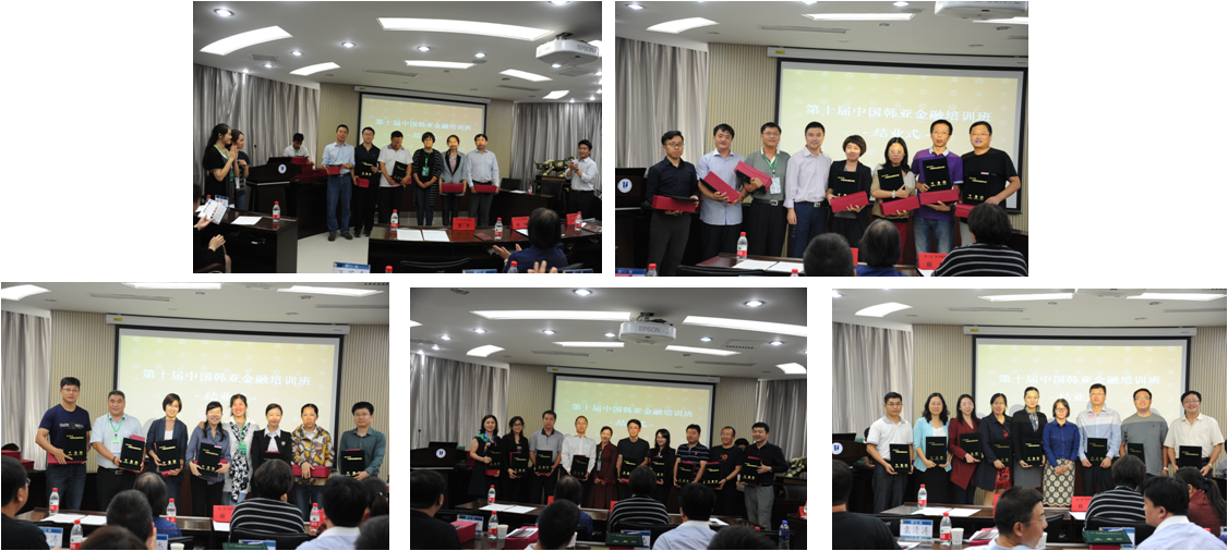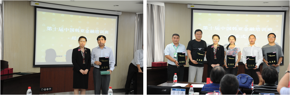 2015年8月28日下午13:30分,第十期中国韩亚金融培训班毕业典礼在77779193永利官网东荣大厦604报告厅隆重举行。77779193永利官网刘金全院长、金晓彤副院长、韩亚金融经营研究所尹炳洙室长以及各组指导教授出席了毕业典礼。