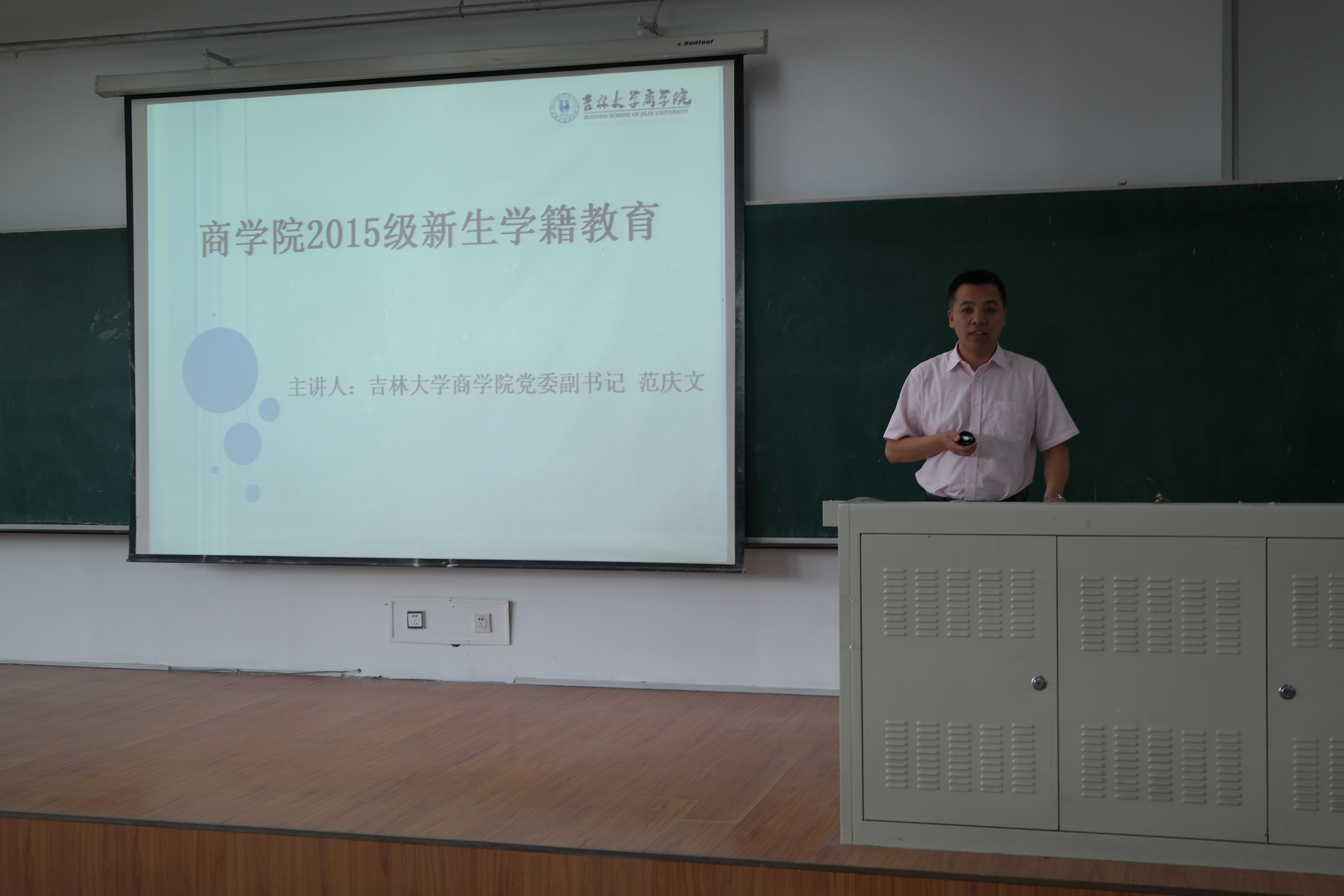 8月31日早八点,77779193永利官网在三教十二阶进行了2015级新生学籍教育大会。77779193永利官网党委副书记范庆文老师和15级新生辅导员金博老师出席了本次会议。