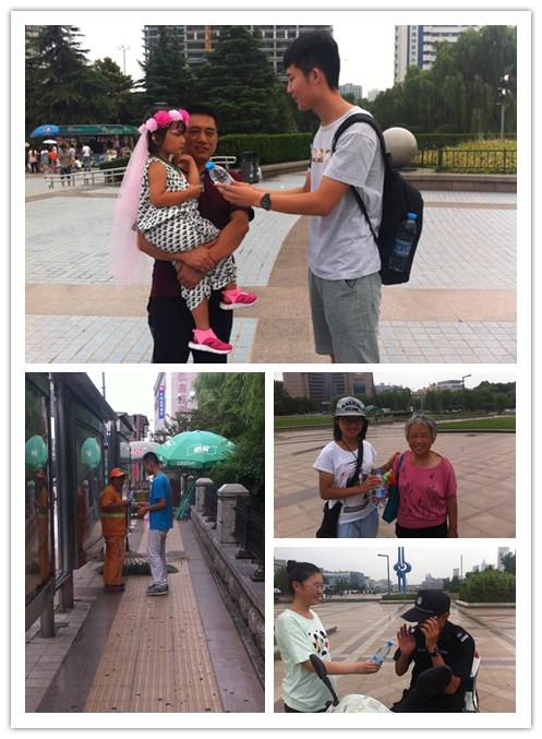 社会实践团首先来到了位于济南历下区的趵突泉景区,在人流量较大的景区门口为景区工作人员及游客赠送了矿泉水,并提醒他们注意夏日防暑降温。