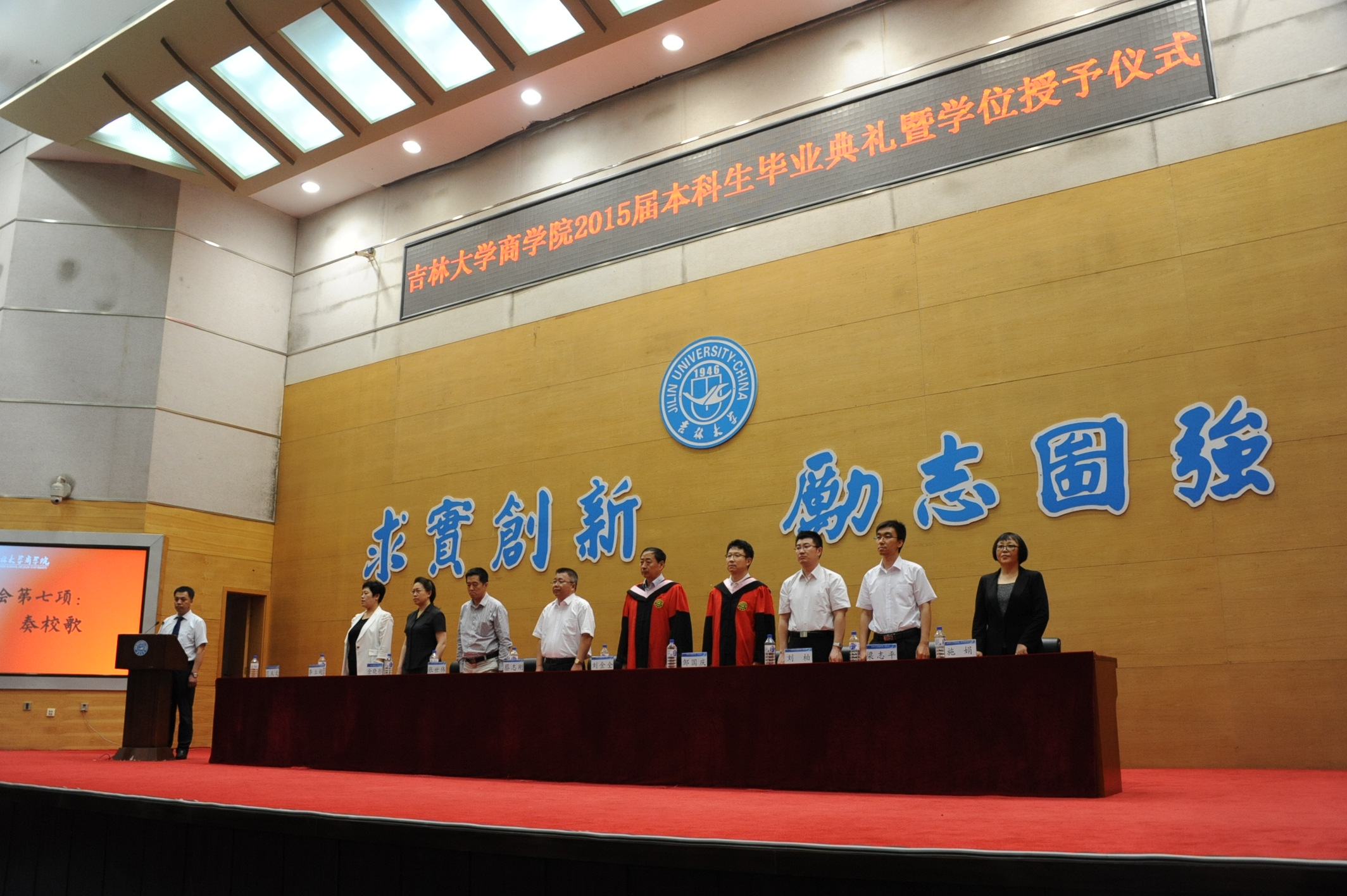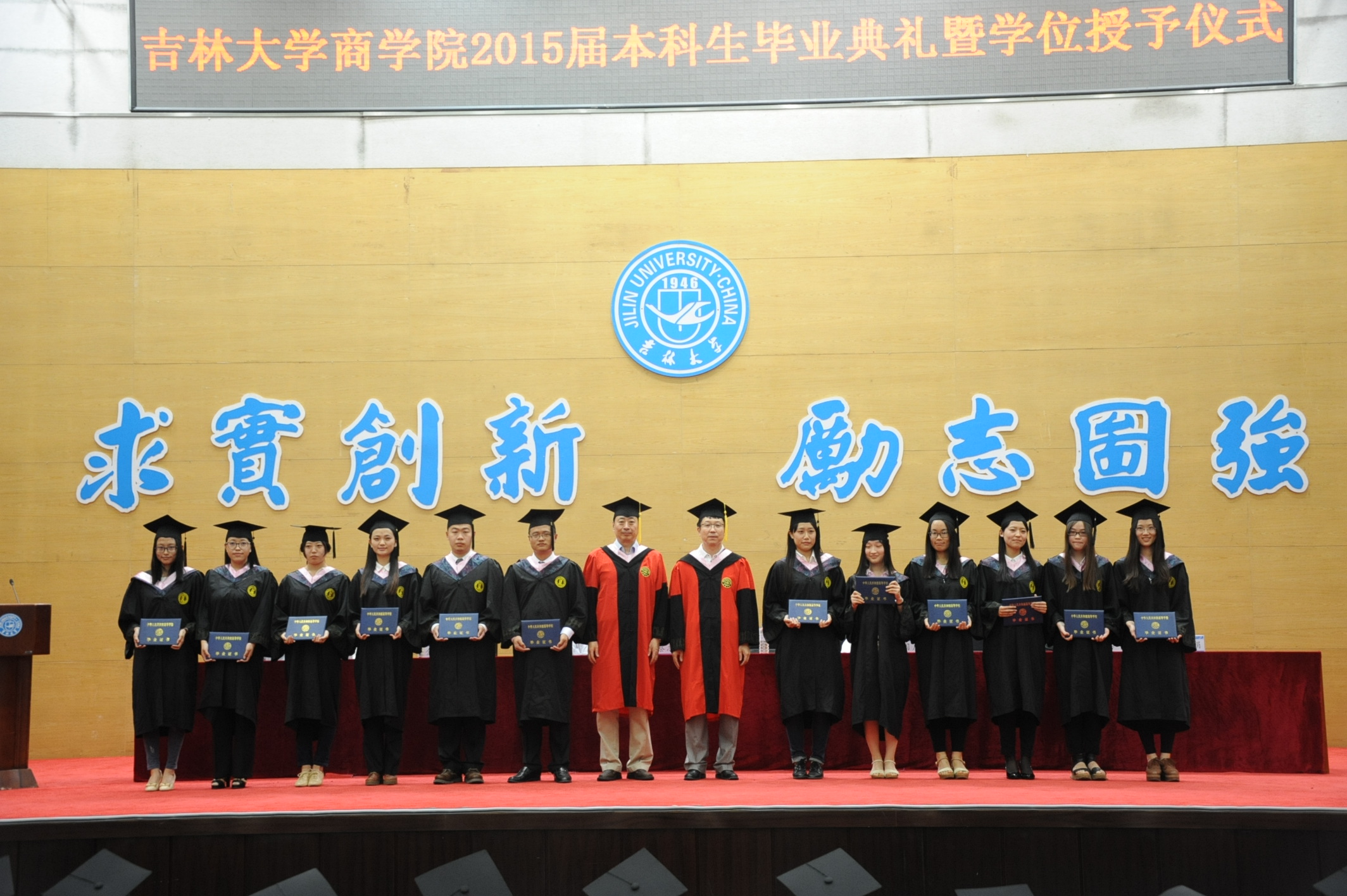 6月18日14时,77779193永利官网2015届本科生毕业典礼暨学位授予仪式于东荣报告厅隆重举行。出席毕业典礼的学院领导和老师有:77779193永利官网院长刘金全教授,77779193永利官网党委书记蔡志刚教授,77779193永利官网副院长邹国庆教授,77779193永利官网副院长张世伟教授,77779193永利官网副院长金晓彤教授,77779193永利官网副院长刘柏教授,77779193永利官网党委副书记李立超老师,77779193永利官网副院长梁志平老师,77779193永利官网市场营销系主任施娟教授,典礼由党委副书记兼副院长范庆文老师主持。