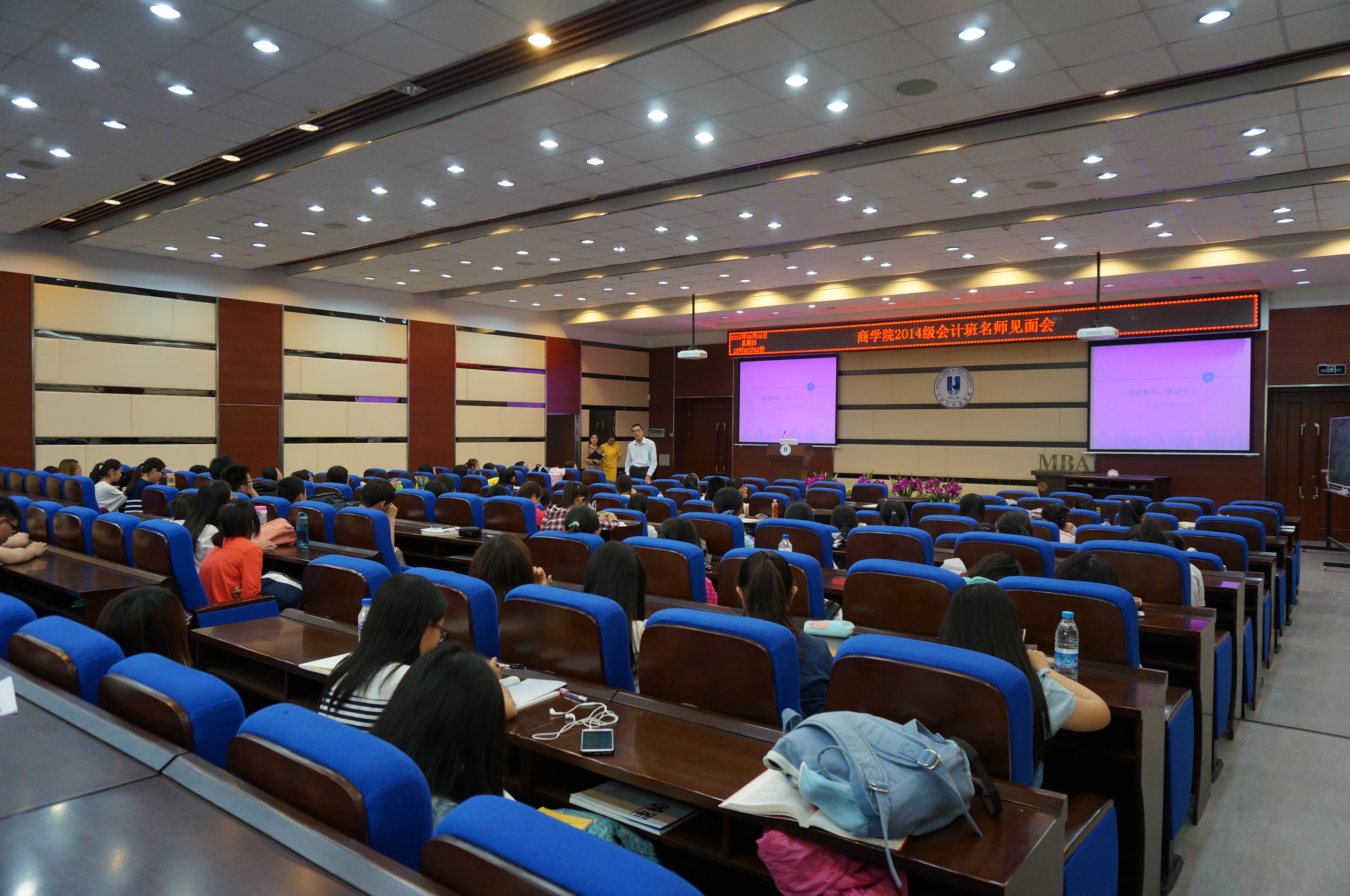 第二部分是名师们对同学们的指导。几位老师肯定了同学们的成绩,同时也对大家提出了“提高班级平均成绩,减小挂科率”的要求。老师们希望同学们能够齐头并进,共同构建一个和谐的大家庭。接着,老师们向同学们介绍了2011级部分毕业生的就业去向,并借此向大家说明:会计系的就业前景非常好,希望同学们能够努力学习,在这条道路上越走越远。最后,老师们向大家介绍了会计学专业的知识体系和实践性的特点,以帮助同学们在学习中找到方法。