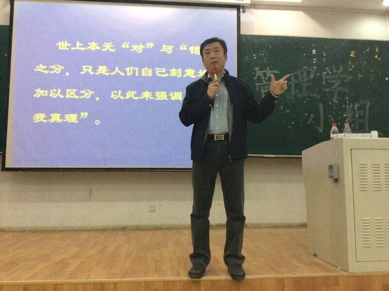 张老师以深厚的知识功底和丰富的人生经历为基础,以妙趣横生的故事为引子,为同学们解说管理学中的奥秘。在讲到企业利润最大化时,张老师以生动的动作,惟妙惟肖地“扮演”了三国演义中的关云长,从而将管理学中对利润生硬的概述鲜活地搬上了讲台,给同学们留下了深刻的印象。而说到组织、计划、等专业名词时,张老师更是以通俗易懂的小故事为例,对这些词语进行了逐个的深度剖析,将管理学知识悄声无息地融入到了整场讲座之中。