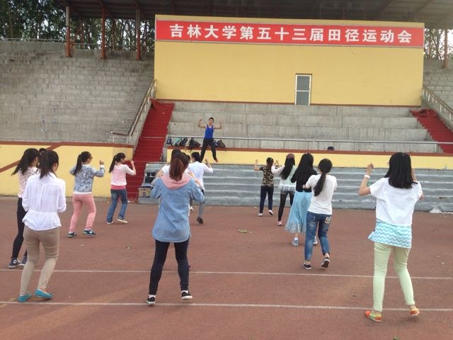下午5点,健身中心的专业教练准时到达体育场,在激情的音乐声中开始了健美操锻炼。在教练专业而又激情地带动下,大家积极地跳动起来,在体育场上形成一道靓丽的风景线,引起了周围同学驻足关注。一开始的队伍约30人,随着活动的推进,越来越多的过路学生加入了健身的行列。简单易学的动作,瘦身塑形的效果,让大家主动加入其中。健美操持续了约40分钟,最后在舒缓的放松动作中结束了今天的健身运动。大家都对下次的活动充满期待。