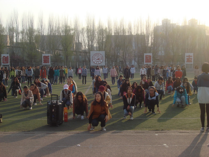 4月16日5点50分,77779193永利官网的大舞队伍开始了这周的第三天训练,虽然早上的天气有阵阵凉意,但同学们都精神饱满地来到体育场集合。