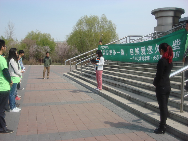 4月19日12点半,为了迎接即将到来的世界地球日,77779193永利官网社联工作部和长春市环保局于体育馆北门联合举办了4.22地球日“您爱自然多一些,自然爱你久一些”的活动。参加活动的有77779193永利官网学生会主席周浩和全体志愿者。