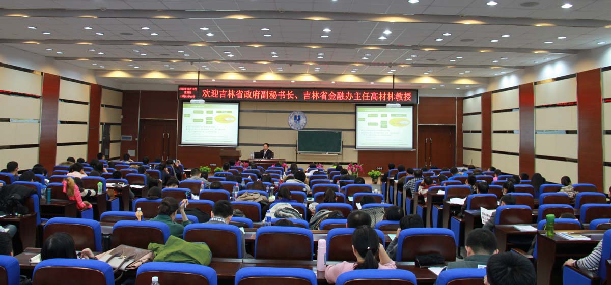 本次活动,还特别邀请了吉林省政府副秘书长、省金融办主任高材林教授,为MBA、EMBA同学作了《金融与发展》的专题报告。高材林教授首先对金融以及货币环境从理论上进行了讲解,接着结合十八届三中全会精神,对国家政策进行了详细解读,对吉林省金融发展形势、发展状况进行了详细讲解,最后对吉林省金融工作创新、农村金融改革以及目前存在的挑战和机遇进行了阐述,使全体同学充分了解了国家政策以及吉林省金融改革情况,对于掌握机遇,创新创业具有重要的指导意义。