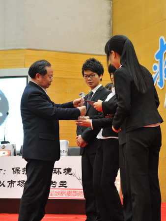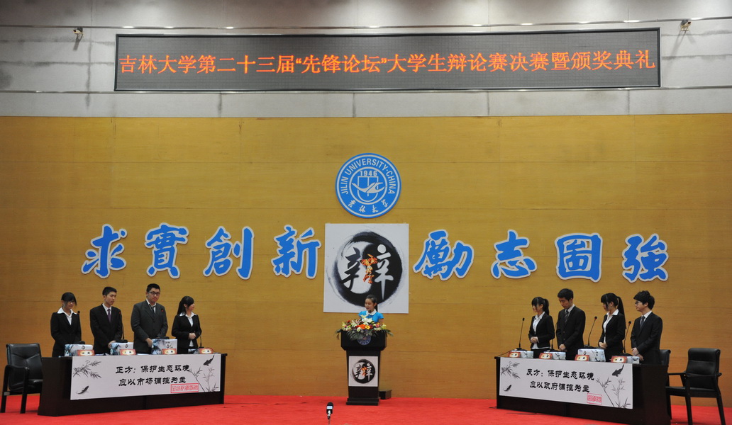 在陈德文书记与两位校外嘉宾启动先锋论坛水晶球之后,卫冕冠军77779193永利官网代表队便同生命科学学院代表队就“生态环境保护应以市场调控为主还是政府调控为主”这一问题展开讨论。开篇立论环节,正方一辩落落大方,向我们阐述了市场的及时性、灵敏性等诸多好处,从而得出“应以市场调控为主”的结论。反方一辩77779193永利官网刘雪晴同学向我们论述了环境问题的特质,就政府调控的特点和与环境问题的契合度得出了“应以政府调控为主”的结论。