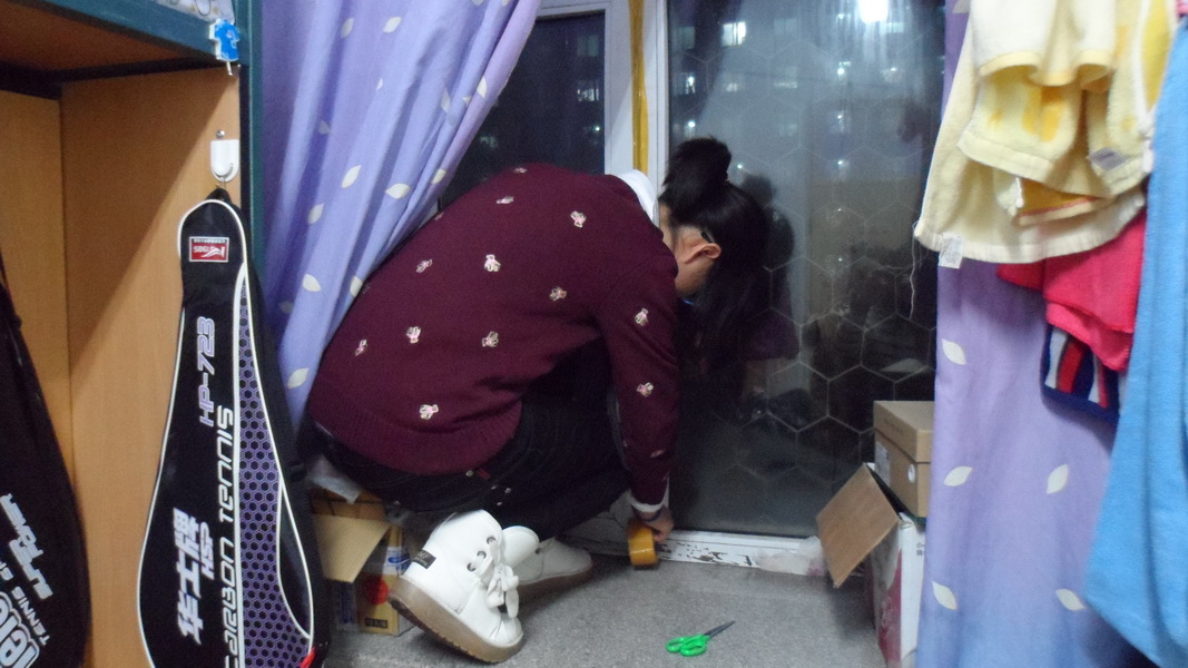 11月26日晚,为保证宿舍内的温暖,77779193永利官网学生会生活部为77779193永利官网13级女生寝室进行了封窗活动。77779193永利官网对同学们无微不至的关怀,让来自五湖四海的同学深深地感受到了家的温暖。