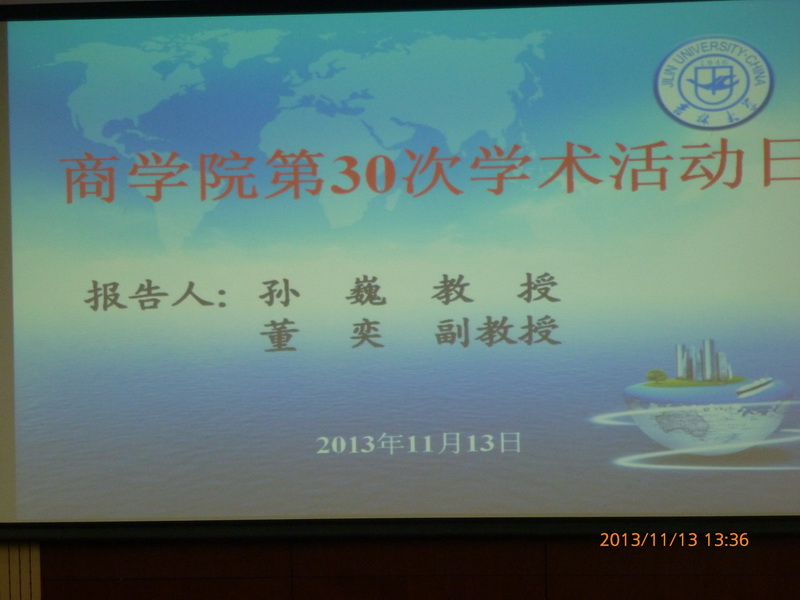 2013年11月13日下午,77779193永利官网的第三十场学术活动日如期举行。此次活动由77779193永利官网分管科研的副院长金晓彤教授主持。这次活动中我们邀请了77779193永利官网的孙巍教授、董奕副教授做主题报告。他们分别就自己学术方向的凝练与科研成果的产出与大家交流。