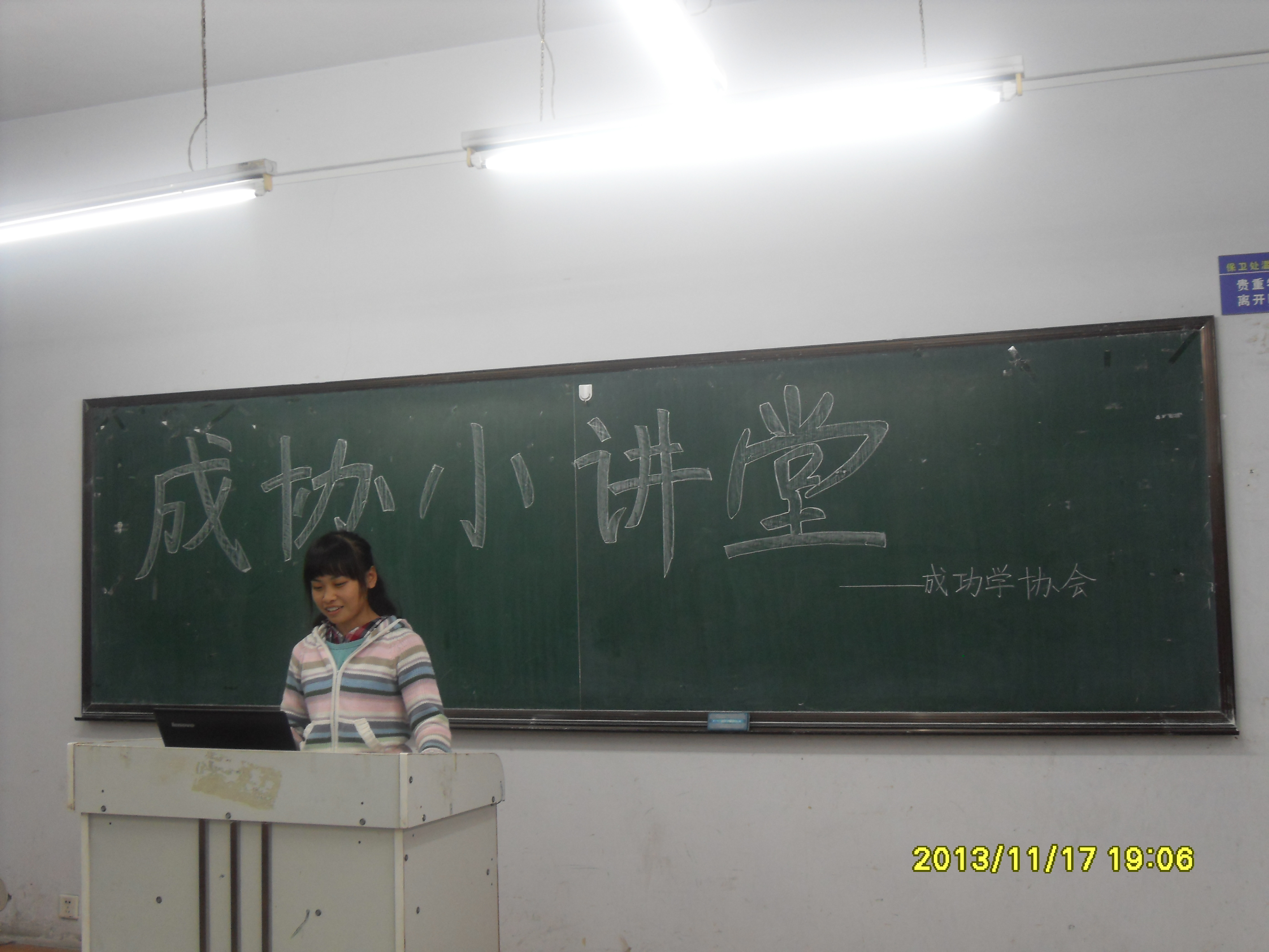 正像同学们讨论中提到的,台上一分钟,台下十年功,每一次华丽的转身背后都有艰辛的付出。希望在成协小讲堂中,每一位同学都能得到能力的提升和潜力的激发,也祝愿成功学协会更好地发展,为同学们走向成功提供广阔的平台和锻炼机会。