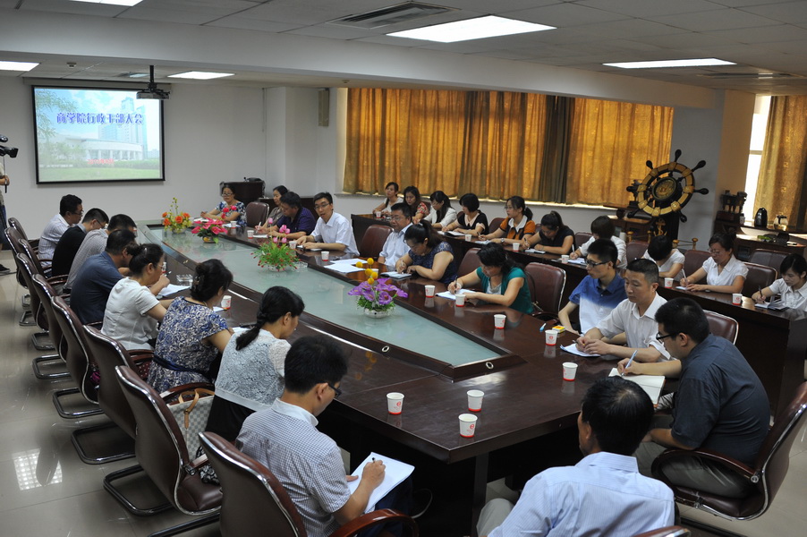 首先,行政副院长梁志平同志部署了新学期的行政工作。梁副院长在对各部门日常行政工作肯定的基础上,重点提出了两项新学期的工作计划。一是77779193永利官网建院二十周年庆典的筹备工作。目前,院庆筹备即将进入收尾阶段,梁副院长强调了大家应继续坚持蔡书记提出的四项工作原则,即“强基础,抓细节,优服务,重落实”,全面做好院庆相关工作。二是,各办公室要做好工作总结。学院计划年底举办管理干部论坛,给大家提供一个分享行政管理工作体会的平台,互相学习、交流经验。此外,各办公室要从文字、影音各方面完善年终工作总结,从现在开始设计制定每个月甚至是每一天的工作计划,为能扎实稳步地开展新学期工作打下坚实基础。