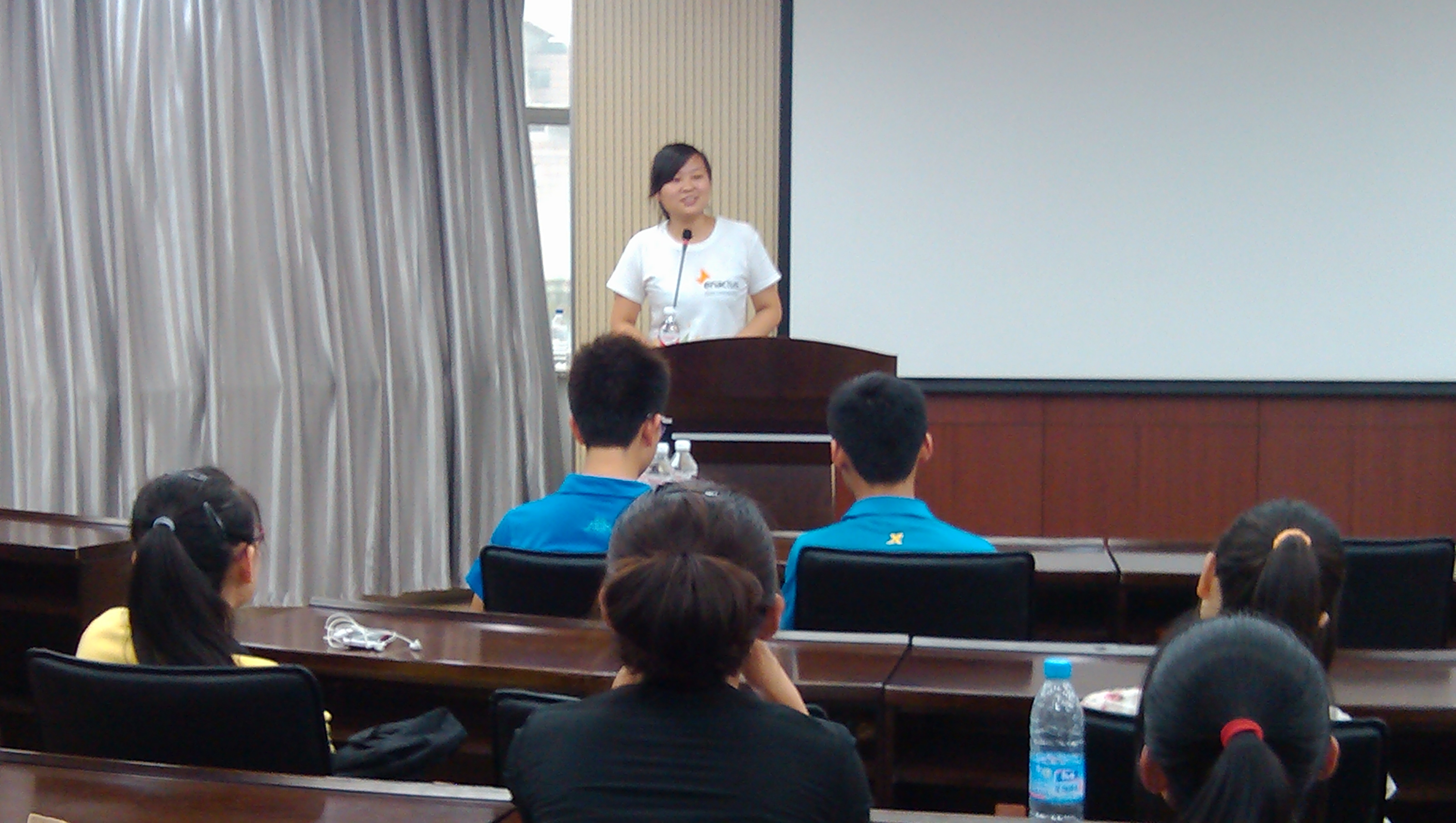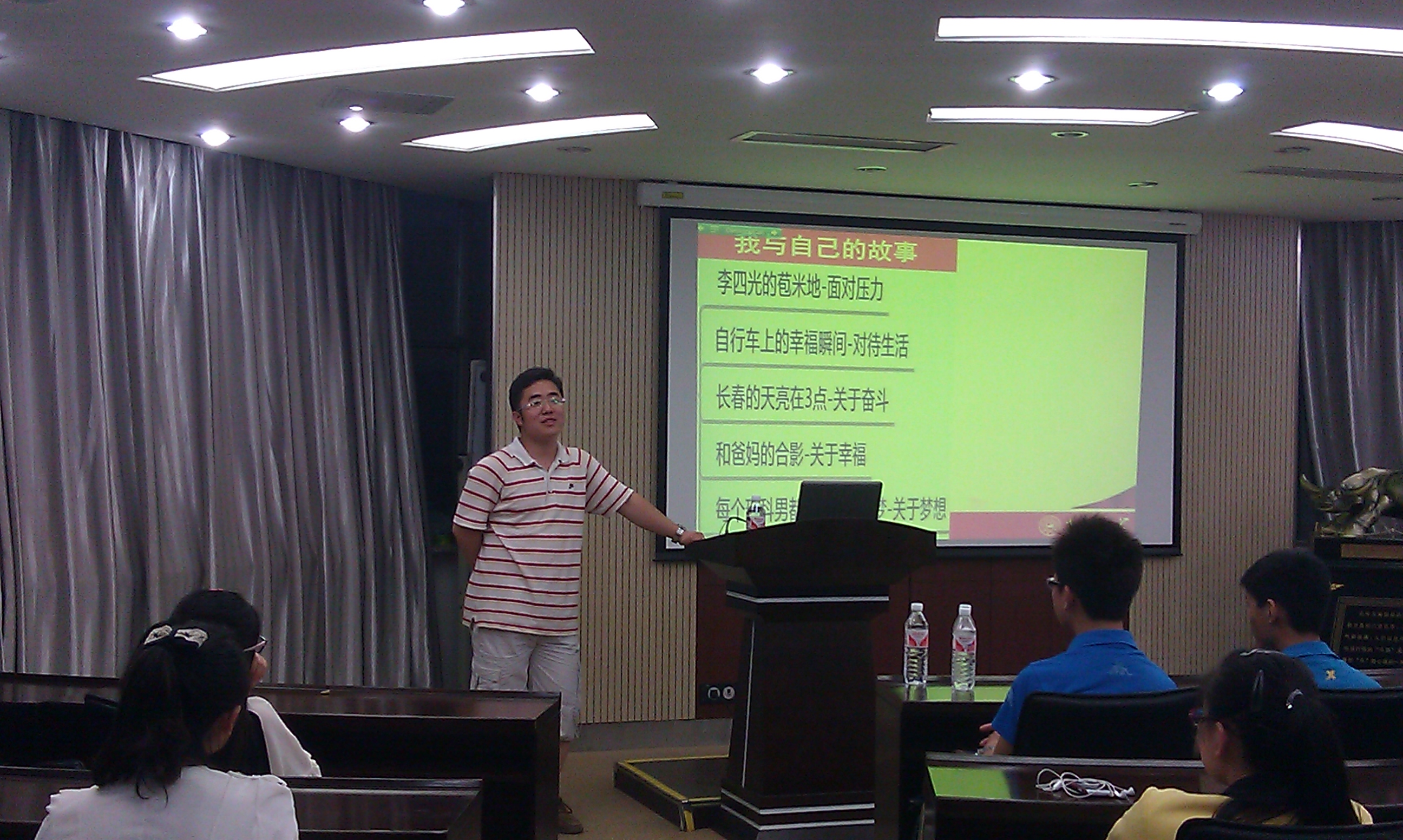 首先由胡潇婷同学与同学们分享她的成长经历。她指出每个人应该树立起自信,而自信来源于自己的能力、给自己积极的心理暗示和与他人交往中的表现。紧接着她从交往延展开来,建议我们注重交友,慎选交际圈。接着她与同学们分享了她在读书方面的心得,举了几个典型的例子强调了读书的重要作用,即能够帮助我们构建思维框架、改变思维模式,给予我们对生活乃至人生有意义的启示,并为同学们推荐了几本经典名著。最后,在学习方面她建议同学们调节自己最积极的心理状态,提高学习效率,尽量不要做无用功。
