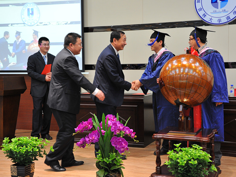 最后,2010届MBA学生代表杨柳进行了发言。她表示,通过在77779193永利官网的学习,大家收获了很多。感谢学校的大力培养,感谢老师的辛勤付出,感谢同学们的陪伴,也感谢亲人们的坚持,并带领所有学员起立向老师们行“弟子礼”,场面感人激动。她说:今天即使大家走出了77779193永利官网的校门,但是大家身上已经深深地烙上了77779193永利官网的烙印,“吉大帮”将是同学们坚实的后盾,大家会时时以吉大学子鞭策自己,为吉大争光,为社会多作贡献。