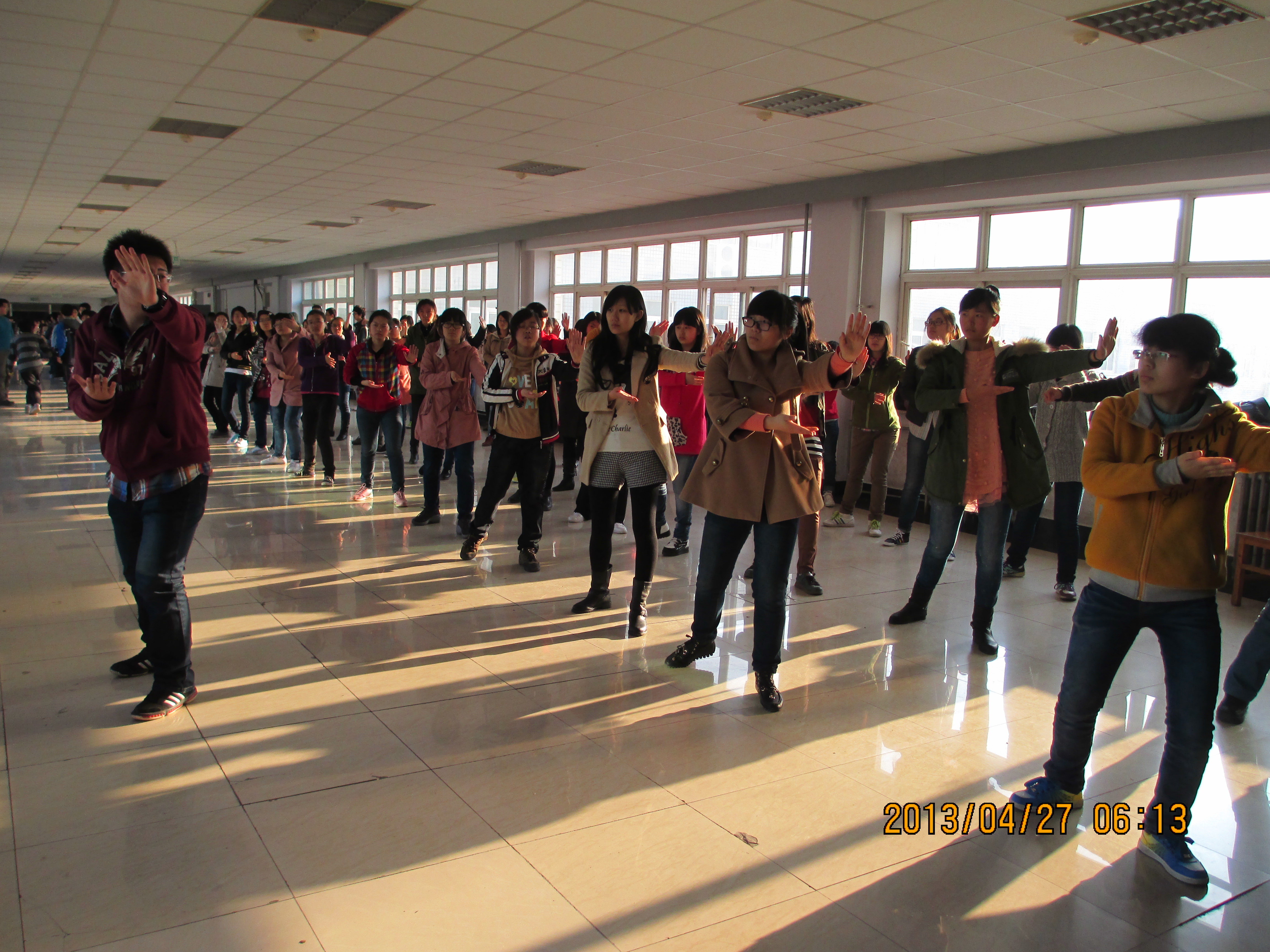 早上天刚蒙蒙亮,女生们已经准时来到指定地点,进行太极拳训练,一丝丝阳光透过玻璃落在她们身上,形成一幅和谐的画面。夜晚,伴着昏暗的灯光,女生们又开始了紧张的练习,时间虽晚,却丝毫不影响大家的训练热情,一个个精神饱满。
