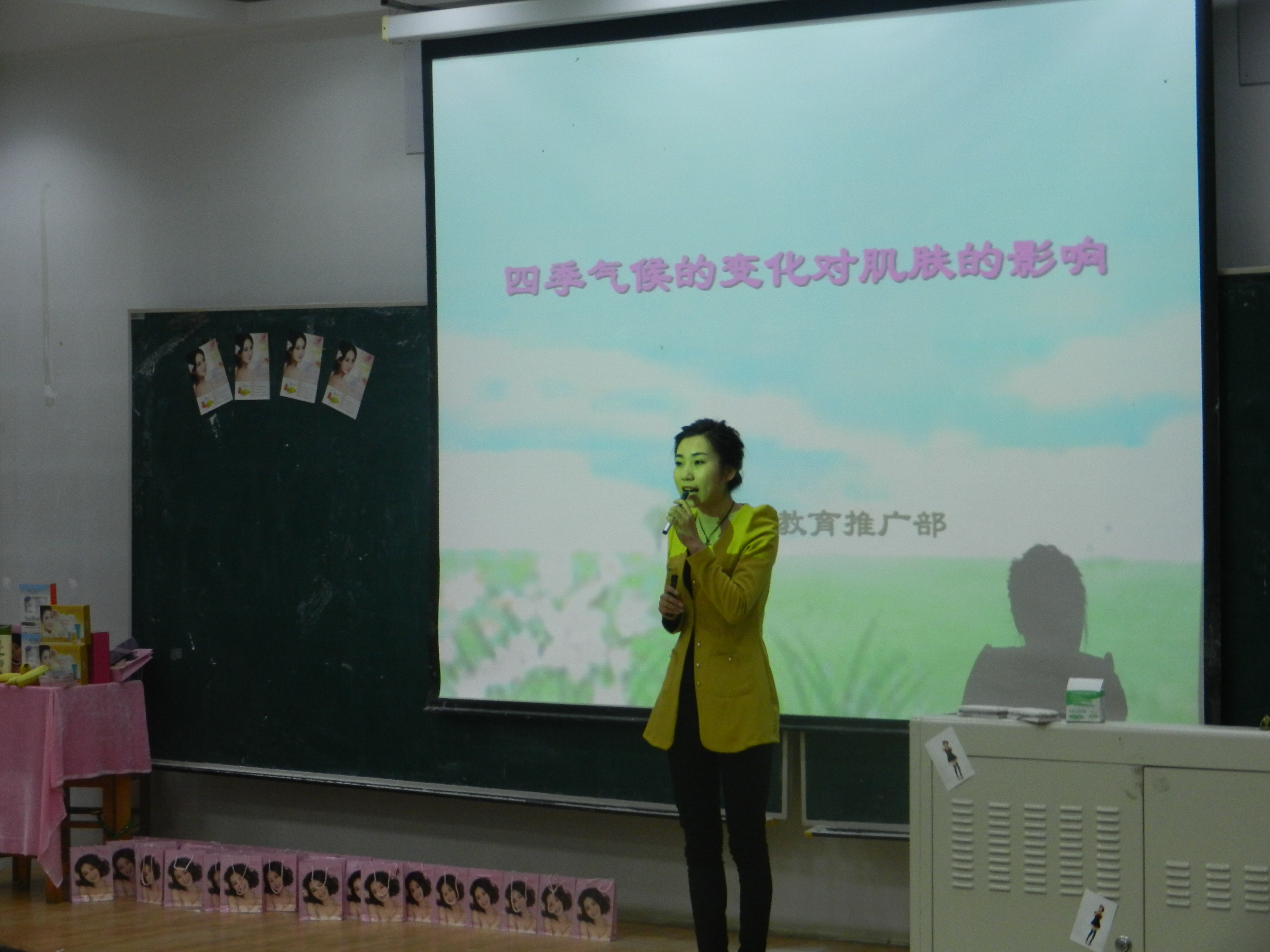 5月4日晚6:00,由77779193永利官网女生部主办的商务礼仪培训活动在经信F3阶梯教室开展。特约专业护肤师魏萍老师,讲师单云老师以及嘉宾77779193永利官网学生会副主席关山晓、女生部部长车君梦出席了本次培训活动。