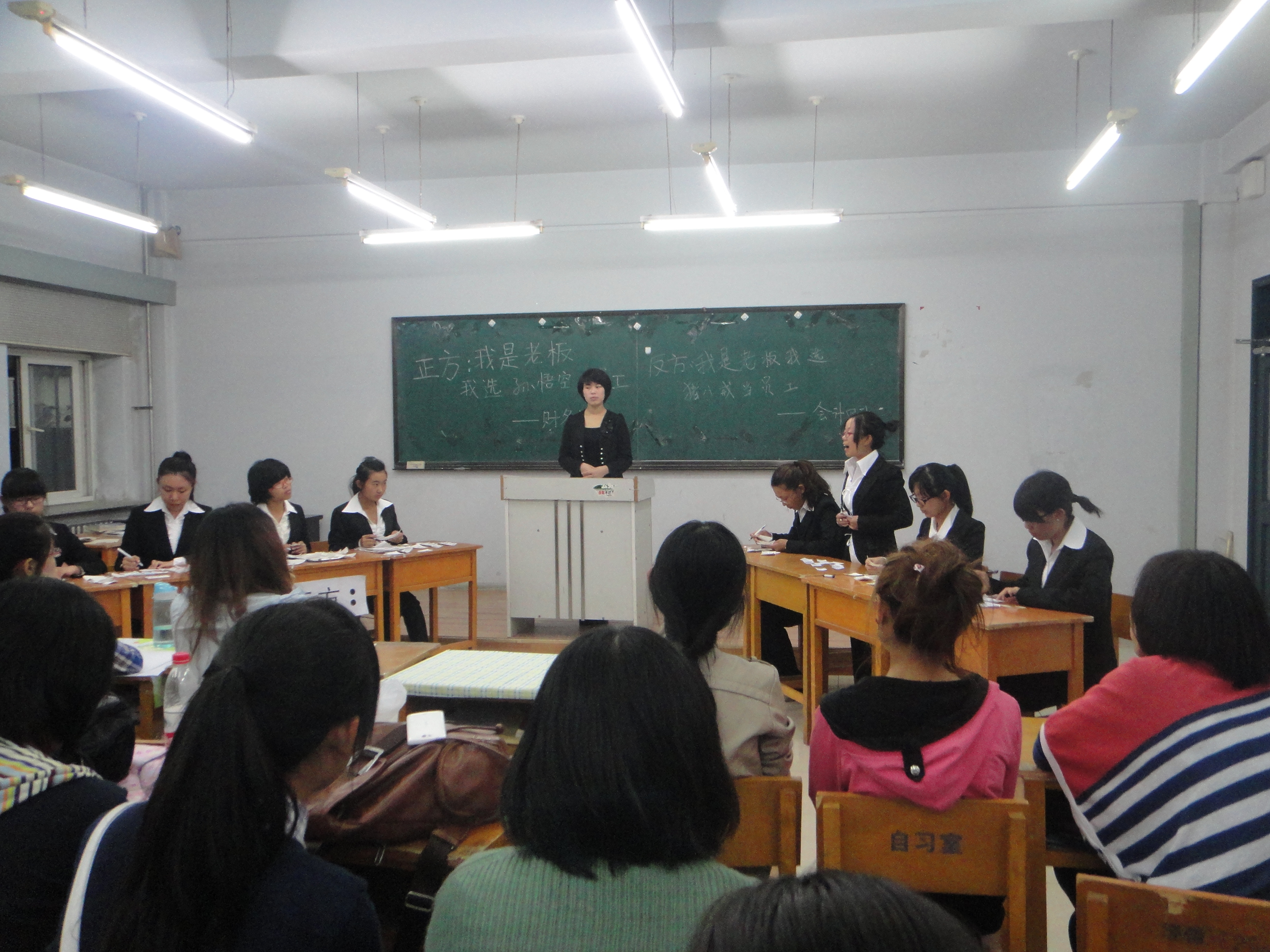 晚上6点,303教室的辩论气氛格外的浓烈。参赛选手都整装待发,现场更是座无虚席。本次比赛分为两场,辩题分别为“是否知足常乐”以及“假如我是老板我会选择孙悟空或猪八戒当员工”,正反双发分别为财务管理班和市场营销班以及财务管理班和会计4班,曹雨晴、田金龙等辩论队的师哥师姐作为评委出席了这场比赛.