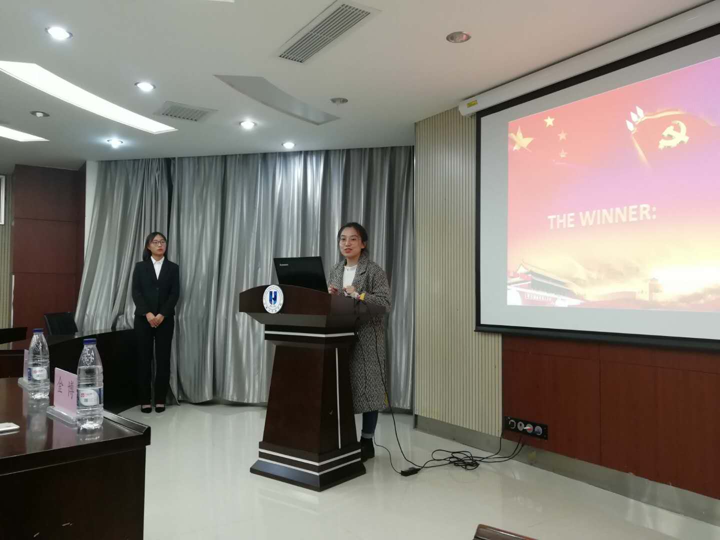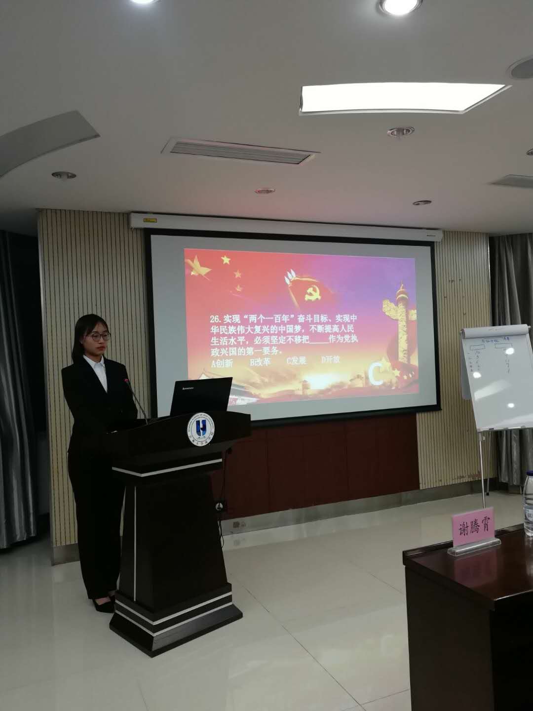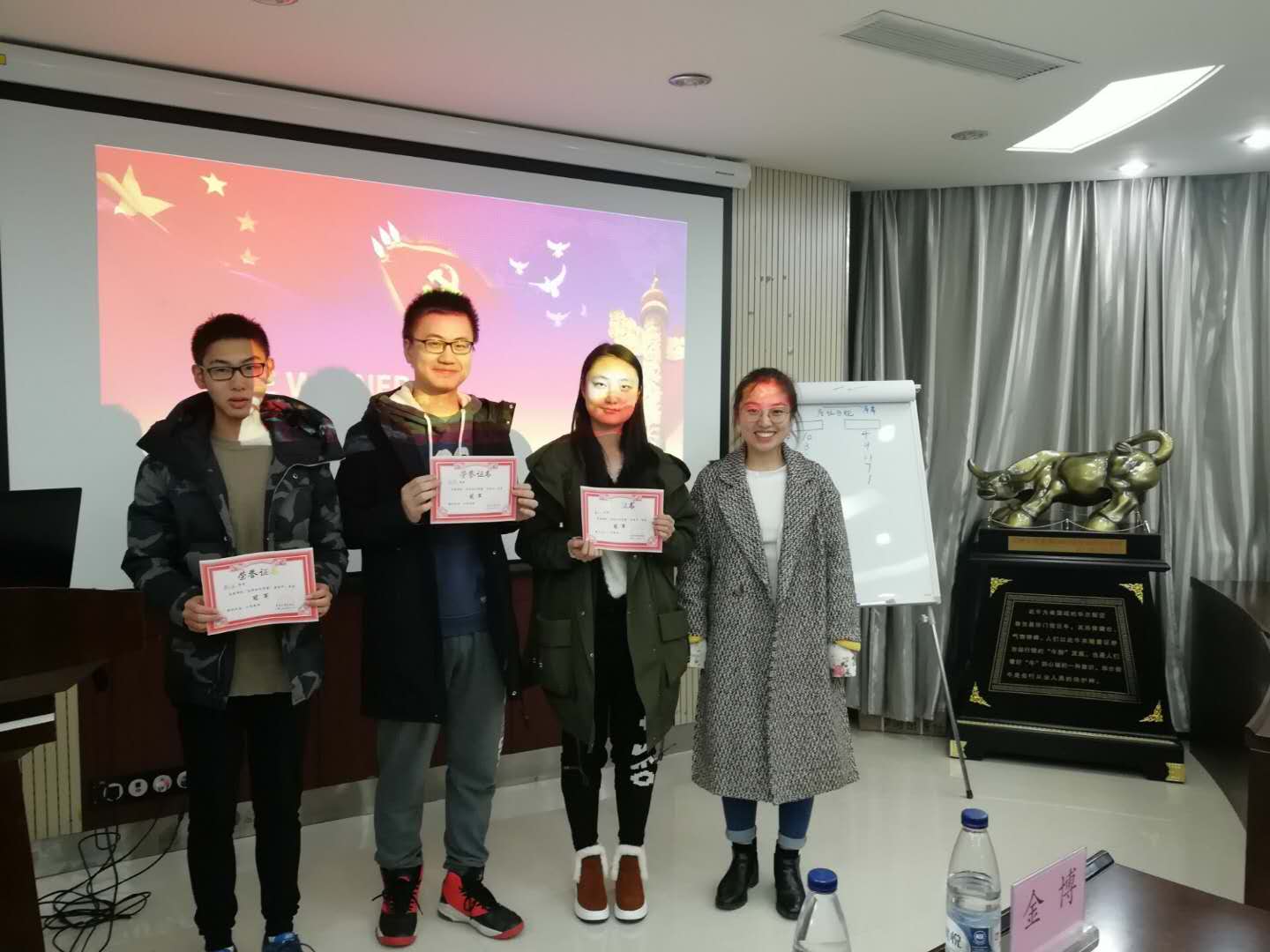 最终胜出的两队迎来了紧张刺激的决赛,决赛过程中两队的参赛选手向大家展示出了他们对党团知识党团历史了解之全面,让在场的同学们都受益匪浅。比赛结束后,金博老师对本次活动进行了总结并和谢腾霄一起为获奖同学颁发了证书。
